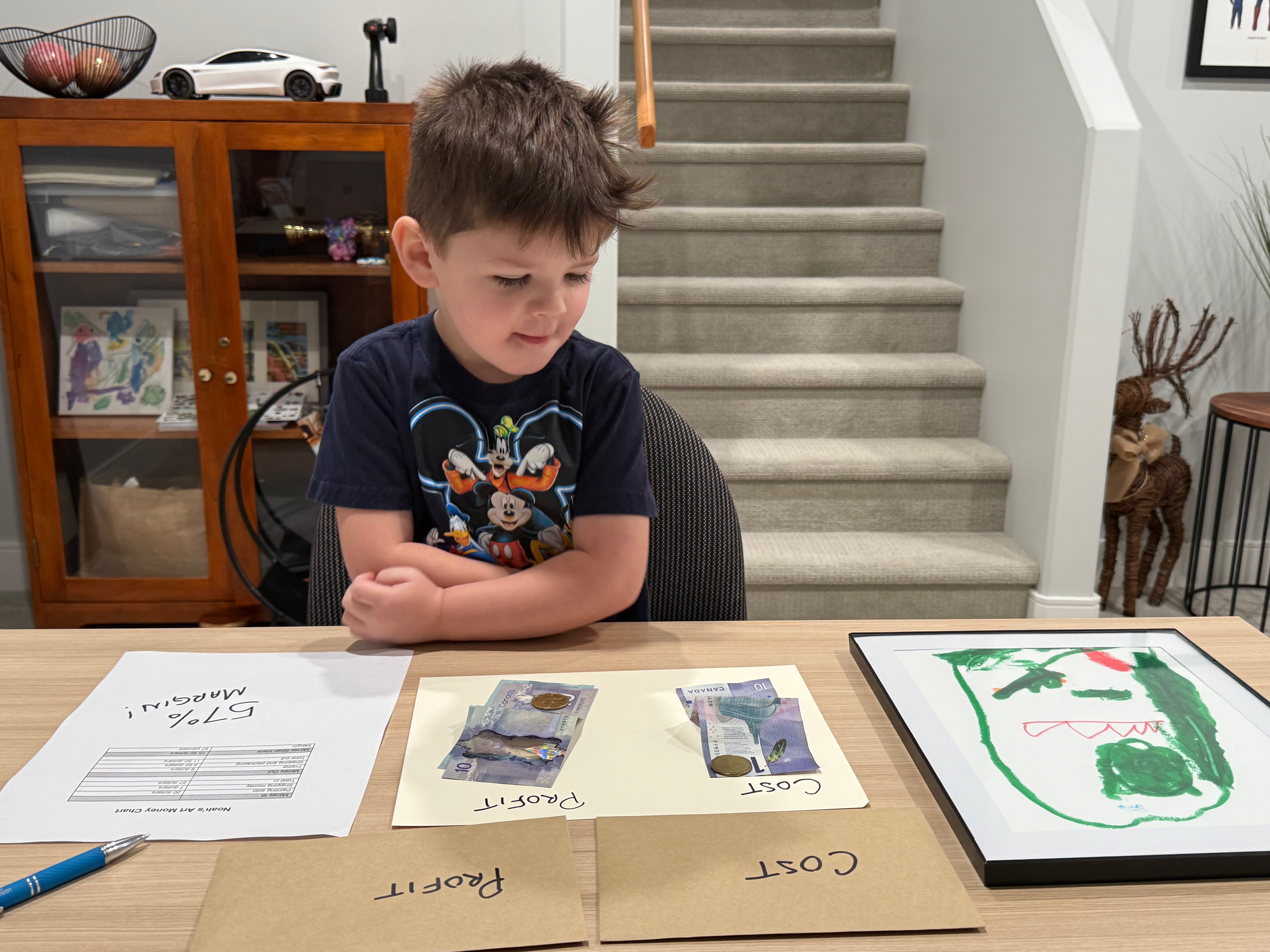 It began when I asked my Daddy if I could sell my drawings to save for toys and my very own ice cream stand. I am three and a half, and every piece you see here is made by me, with my Daddy helping on some parts. Each sale helps me learn, create, and build my first little business.